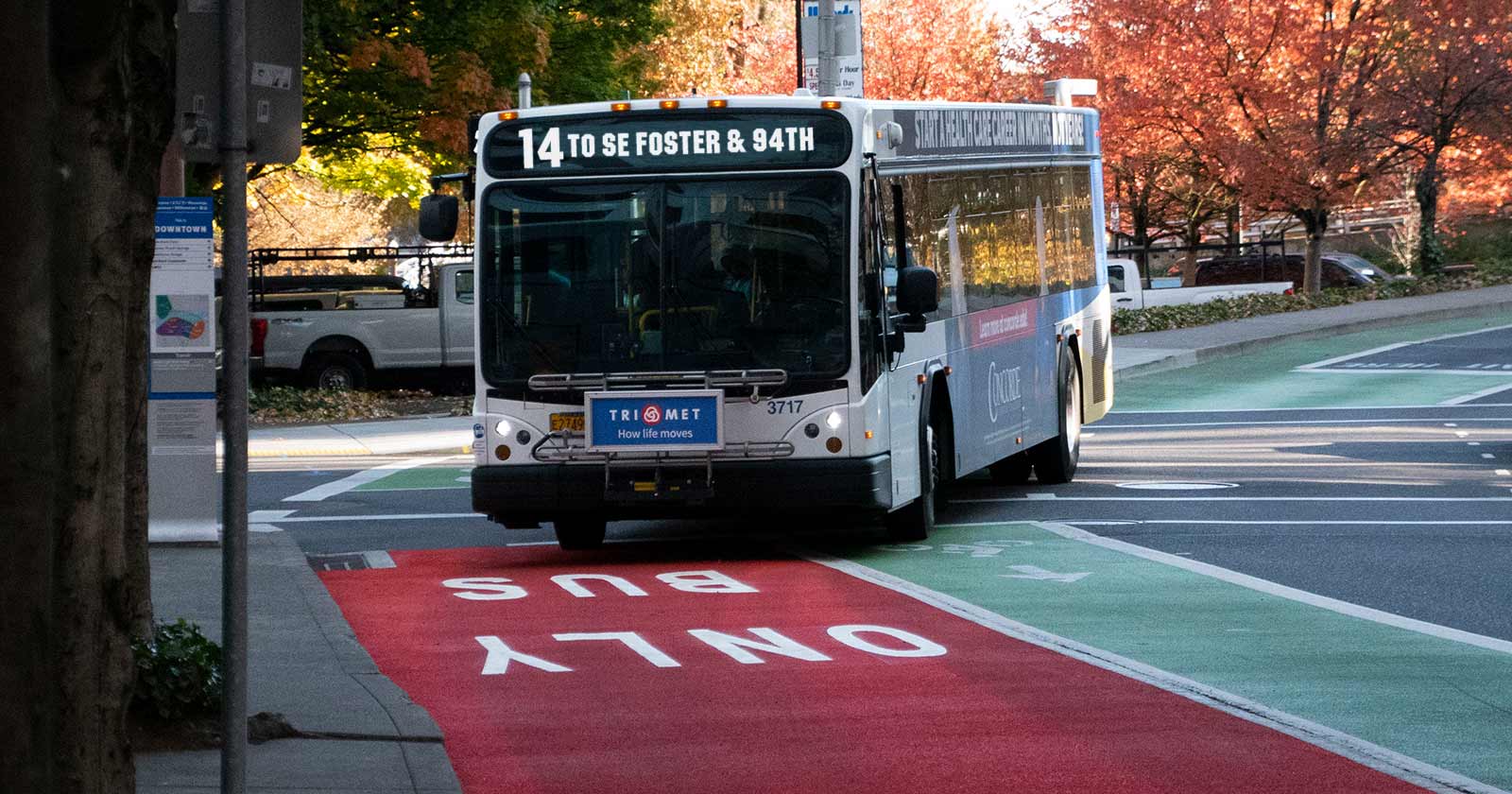 We’re working with our partners at PBOT to install red transit-only lanes that help speed up buses, which makes faster and more reliable trips for riders. The lanes are painted red and marked “bus only” to let drivers know that they don’t belong in those lanes. We call them “Rose Lanes.”