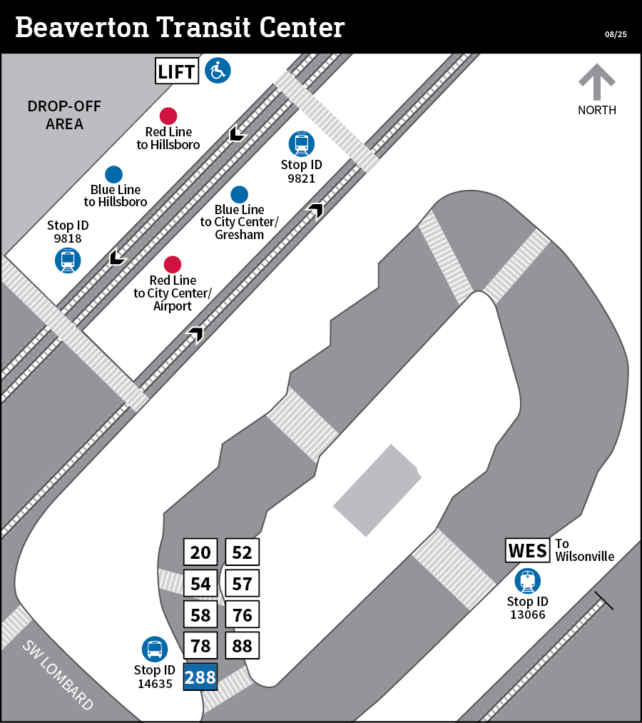 The transit center is north of SW Canyon on SW Lombard in Beaverton.